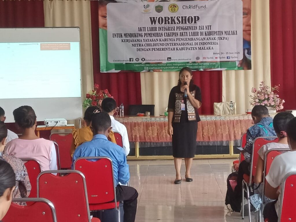 Kabid Pencatatan Sipil (Capil) Dinas Disdukcapil Kabupaten Sumba Barat Daya, Erlinda Taralandu selaku narasumber workshop akte lahir integrasi penggunaan Akte untuk Semua Anak (ASA) NTT di Hotel Ramayana Betun, Rabu (25/6/26) mengatakan penggunaan ASA NTT sangat membantu, karena aksesibilitas dan efesiensi dalam pelayanan akte lahir.