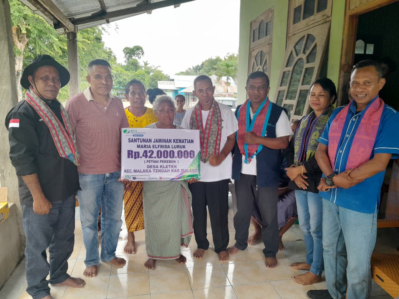 Malaka-NTT, – Badan Penyelenggara Jaminan Sosial (BPJS) Ketenagakerjaan kembali menunjukkan komitmennya dalam memberikan perlindungan sosial kepada masyarakat. Santunan jaminan kematian senilai Rp 42 juta langsung diserahkan kepada ahli waris almarhumah Maria Elfrida Luruk warga Desa Kletek Kecamatan Malaka Tengah Kabupaten Malaka.