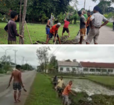 Malaka-NTT, Warga Desa Rabasa Hain di Kecamatan Malaka Barat dan Desa Harekakae di Kecamatan Malaka Tengah secara bergotong royong menjaga kebersihan lingkungan.